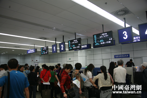 搭乘遠航飛赴臺灣的旅客辦理登記手續。(圖片來源:寧夏臺辦)