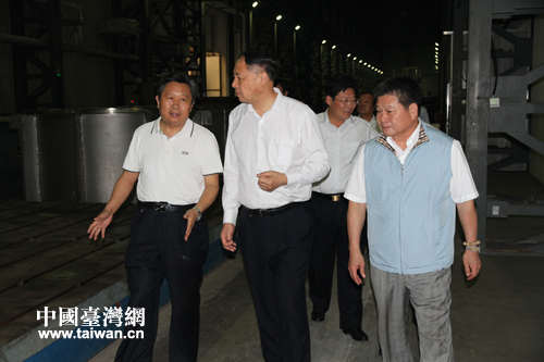 山東省臺(tái)辦巡視員張志強(qiáng)在桓臺(tái)縣臺(tái)資企業(yè)考察時(shí)聽(tīng)取企業(yè)負(fù)責(zé)人的情況介紹。(圖片來(lái)源:淄博市臺(tái)辦)