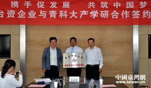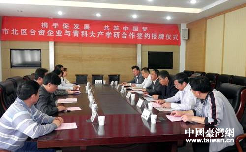 青島科技大學與青島市市北區臺資企業建立產學研戰略合作。(圖片來源:青島市臺辦)