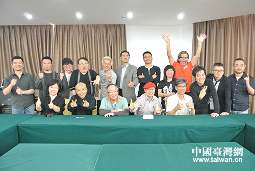 經過激烈的創意廝殺,金犢決審結束后評審老師們搞笑大合影。(圖片來源:棗莊市臺辦)