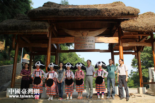 梭戛長角苗女孩在寨門口歡迎來賓。(六盤水市臺辦 蔣承琳 攝)