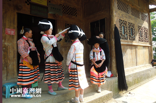 長角苗女孩梳妝。(六盤水市臺辦 蔣承琳 攝)