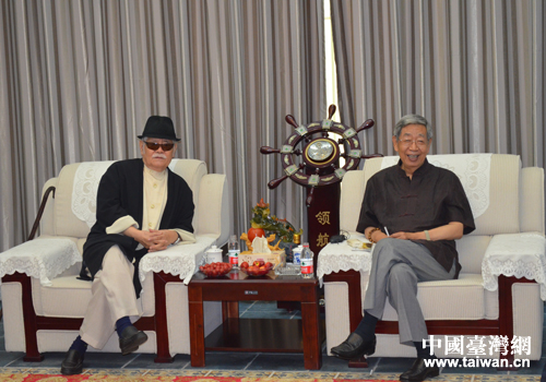 全國(guó)人大常委會(huì)原副委員長(zhǎng)許嘉璐會(huì)見(jiàn)臺(tái)灣水墨畫(huà)大師李奇茂。(圖片來(lái)源:聊城市臺(tái)辦)