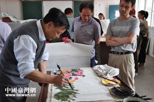 臺屬畫家現場作畫。(圖片來源:廣元市臺辦)