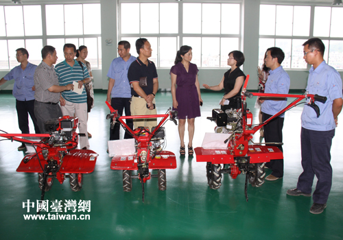 調(diào)研組在調(diào)研貴州風(fēng)華精密設(shè)備有限公司微耕機項目。(貴陽市臺辦 王康 攝)