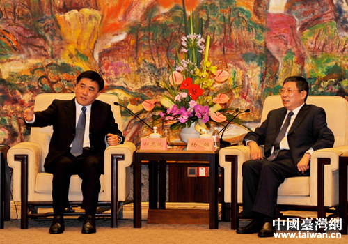 上海市長楊雄會見臺北市長郝龍斌一行。(上海市臺辦 常志康 攝)