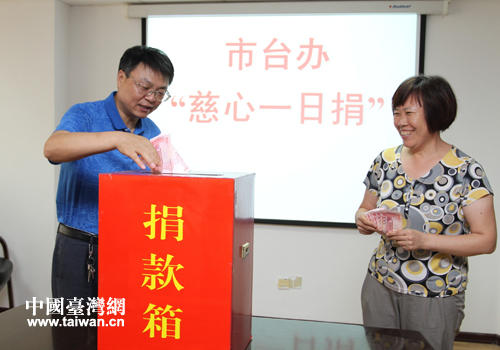 中國(guó)臺(tái)灣網(wǎng)7月8日東營(yíng)消息 7月4日,東營(yíng)市臺(tái)辦開(kāi)展了以“攜手慈善、共創(chuàng)和諧”為主題的“慈心一日捐”活動(dòng)。活動(dòng)中,全體干部職工積極響應(yīng),踴躍捐款,奉獻(xiàn)愛(ài)心,共捐獻(xiàn)善款5200元,以實(shí)際行動(dòng)弘揚(yáng)中華民族樂(lè)善好施、扶貧濟(jì)困的傳統(tǒng)美德。(中國(guó)臺(tái)灣網(wǎng)、東營(yíng)市臺(tái)辦聯(lián)合報(bào)道)