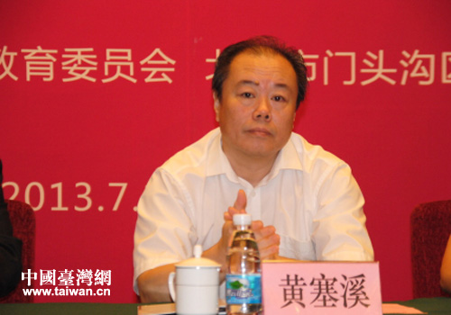 中國臺灣網7月16日北京消息 7月15日,京臺青少年教育研討會在北京市門頭溝區舉辦,北京市臺辦副主任黃塞溪、門頭溝區副區長李昕和北京市臺辦、門頭溝教工委等有關部門負責人以及來自臺灣的38位中小學校長、北京市200位中小學校長參加了研討會。