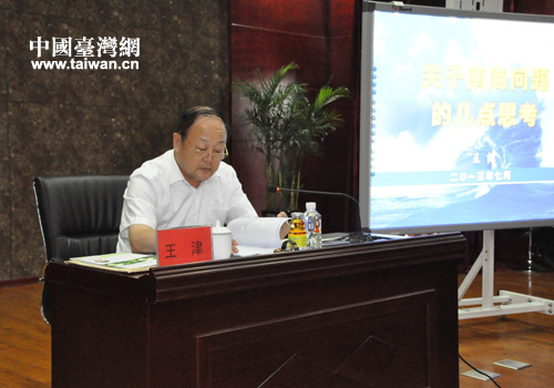 王津圍繞不同時(shí)期臺(tái)海問題的發(fā)展演變過程、黨中央在臺(tái)海問題上的戰(zhàn)略指導(dǎo)思想、臺(tái)海問題的可能走向等內(nèi)容進(jìn)行了深入淺出的講解。他站在國際與地區(qū)和平發(fā)展的高度,通過運(yùn)用大量詳實(shí)的圖片為大家展現(xiàn)了一幅包括寶島臺(tái)灣在內(nèi)的祖國寥闊海疆的美麗圖景。