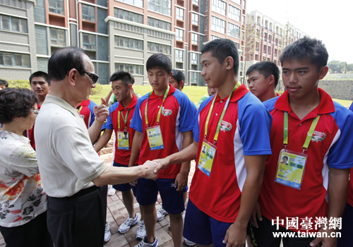 8月16日上午,中國國民黨副主席林豐正一行前往位于南京浦口的亞青村,看望參加第二屆亞洲青年運動會的中華臺北體育代表團,勉勵參賽選手取得好成績。(圖片來源:南京市臺辦)