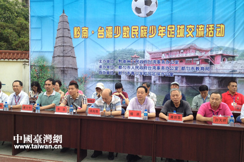 中國臺灣網8月30日都勻消息 2013年8月6日,國臺辦2013年重點交流項目“黔南·臺灣少數民族少年足球交流活動”在貴州省都勻第二中學開幕。貴州省臺辦交流處處長成高榮、副處長嚴文平,黔南州臺辦主任楊波、副主任張榮周,都勻市委常委、市人民政府副市長李波和都勻市臺辦、市教育局、市文體廣電局負責人,臺灣豐里小學少年足球交流團團長、臺灣臺東縣教育處科長許天祥先生和豐里小學校長劉文龍先生、關山小學校長曾淑玉女士等出席。臺灣豐里小學少年足球隊,都勻市九小、十一小、楊柳街小學少年足球隊以及裁判員、教練員,都勻市足球愛好者近200多人參加。黔南州臺辦主任楊波主持開幕式。