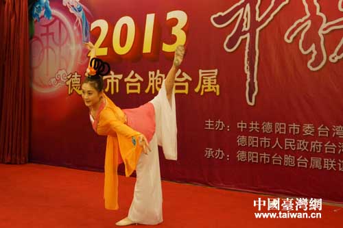 活動中,臺屬代表踴躍發(fā)言,暢談建市30周年來的巨大變化,德陽與臺灣交流交往的大好形勢,暢想兩岸關(guān)系和平發(fā)展的光明未來,紛紛表示要發(fā)揮自身優(yōu)勢,在本職崗位上為我市發(fā)展建功立業(yè),在向臺灣親人宣傳家鄉(xiāng)上不遺余力,在推介臺灣同胞來德陽上當好紐帶;市臺辦機關(guān)干部與臺聯(lián)理事會、臺屬代表共同演唱了《月之故鄉(xiāng)》。在《愛的神話》、《祖國你好》、《鴻雁》、《明月幾時有》、《穆桂英掛帥》、《牧馬人之歌》等節(jié)目表演中,臺屬們或獨唱、或舞蹈、或風琴獨奏、或京劇演唱,載歌載舞抒發(fā)對海峽彼岸親人的深情思念和對祖國統(tǒng)一的熱切企盼,歌唱繁榮富強的偉大祖國。