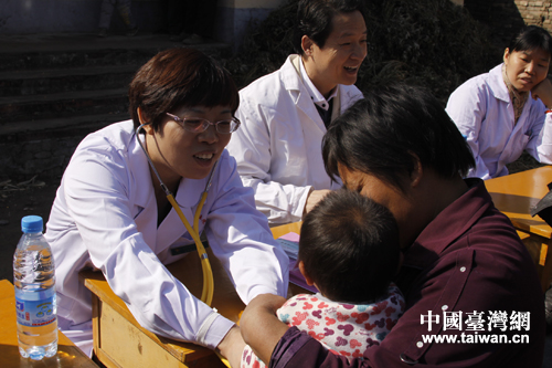 在義診現場,專家為絡繹不絕的村民認真仔細地聽診、切脈,開藥方單,做心電圖,測量血壓。同時還發放健康宣傳資料,在村民中積極宣傳健康知識。(中國臺灣網、安陽市臺辦聯合報道)