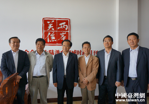 市委副書記趙熙殿(左三)、《兩岸關(guān)系》雜志社法人代表、主持工作副社長鐘河林(右三)、市臺(tái)辦主任于連波(左一)等在《兩岸關(guān)系》雜志社威海工作站合影。(圖片來源:威海市臺(tái)辦)
