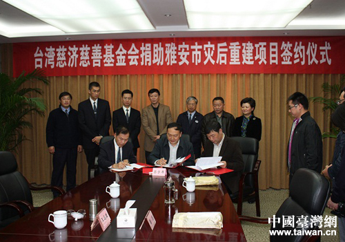 臺灣慈濟(jì)慈善事業(yè)基金會援建雅安災(zāi)后重建項(xiàng)目正式簽約。(圖片來源:雅安市臺辦)