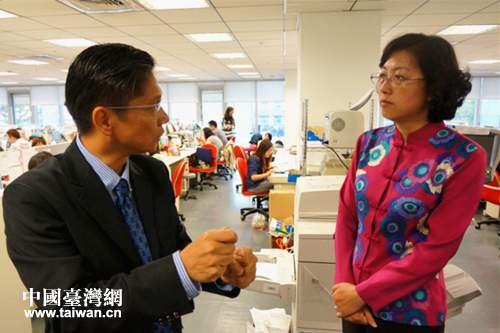威海市委副書記、市長張惠(右一)考察臺灣雄獅旅游集團。(圖片來源:威海市臺辦)