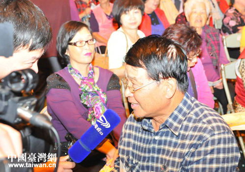 隨行的四川電視臺記者在演出現場采訪當地民眾。(圖片來源:四川省臺辦)