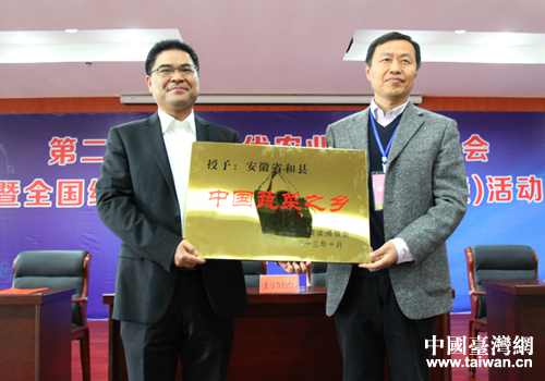 中國臺灣網11月21日安徽和縣消息 日前,由安徽馬鞍山市人民政府、南京市人民政府、安徽省臺辦等單位聯合舉辦的“第七屆中國和縣蔬菜博覽會暨第二屆皖臺現代農業發展研討會”在安徽和縣隆重舉行。會上,和縣被中國蔬菜流通協會授予“中國蔬菜之鄉”的榮譽稱號。