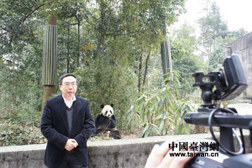 中國臺(tái)灣網(wǎng)12月12日雅安消息 12月11日,臺(tái)灣中天電視臺(tái)《開放·新中國——秀芳點(diǎn)題》節(jié)目組一行赴雅安碧峰峽大熊貓基地開展專題采訪拍攝,并專訪了享有“熊貓爸爸”美譽(yù)的中國保護(hù)大熊貓研究中心主任、四川臥龍國家級(jí)自然保護(hù)區(qū)管理局局長(zhǎng)張和民。