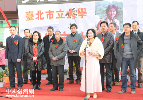 臺灣詩書畫名家、臺北市立教育大學教授、駐馬店籍臺胞譚錦家在家鄉的詩書畫展開幕式上講話。(圖片來源:駐馬店市臺辦)