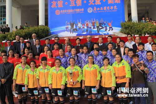 本次友誼賽以“友誼·互信·交流·團結”為主題,由廣西桂臺經濟科技文化交流協會和臺灣中華運動傳播學會共同主辦,分別在廣西外國語學院和廣西師范大學舉行。臺灣中華運動傳播學會表示,在拔河友誼賽中獲勝的廣西隊伍,將有機會獲得免費寶島7日游。當天,臺北景美女中拔河隊還參與背簍繡球、高桿繡球、板鞋等廣西民族傳統體育活動交流,通過賽場內外交流,桂臺兩地青少年收獲了滿滿的“友誼”。此外,臺北景美女中還與廣西外國語學院簽訂了文化、體育、教育交流合作備忘錄。