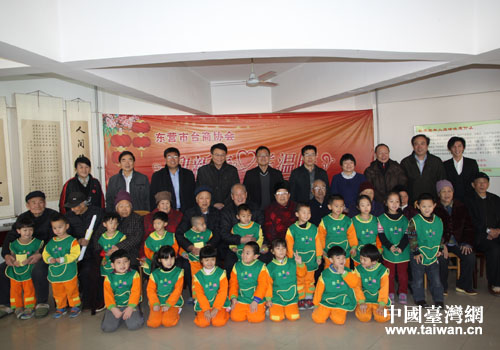 中國臺灣網1月13日墾利消息 1月10日,墾利縣臺辦聯系東營市臺商協會和雅立福國際幼兒園到縣內康力老年公寓開展“迎新春送溫暖”愛心助老捐贈暨慰問演出活動,為老人們捐贈愛心敬老金和慰問品,組織了文藝演出活動。市臺辦副主任殷長海、縣人大常委會副主任陸長河、縣臺辦主任徐春友、市臺商協會會長翁志堯及部分臺商參加了活動。