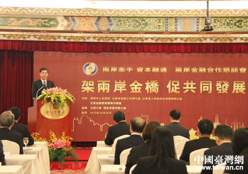 楊魯豫市長在兩岸金融合作懇談會(huì)上致辭推介濟(jì)南。(圖片來源:濟(jì)南市臺(tái)辦)
