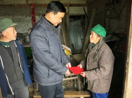 在“三村扶貧行動”聯(lián)系村樂至縣東山鎮(zhèn)方廣村,資陽市臺辦把“走基層”活動與“幸福資陽行”送溫暖行動相結合,為結對聯(lián)系的10戶困難群眾送上了慰問金、慰問品,詳細了解其家庭生產生活情況以及目前存在的困難和問題,鼓勵他們克服困難、樹立脫貧致富的信心。
