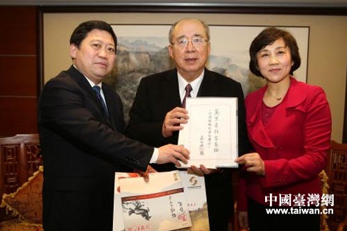 中國臺灣網(wǎng)2月13日臺北消息 2月11日下午,在臺北開封街伯仲文教基金會,中國國民黨榮譽主席、世界客屬總會總會長吳伯雄親切會見了汴梁晚報記者臺灣行特別報道組。在欣然看完報道組帶去的開封市委書記祁金立的親筆信后,吳伯雄表示,將全力幫助開封成功舉辦世界客屬第27屆懇親大會,并題詞“經(jīng)濟合作手攜手文化交流心連心”。