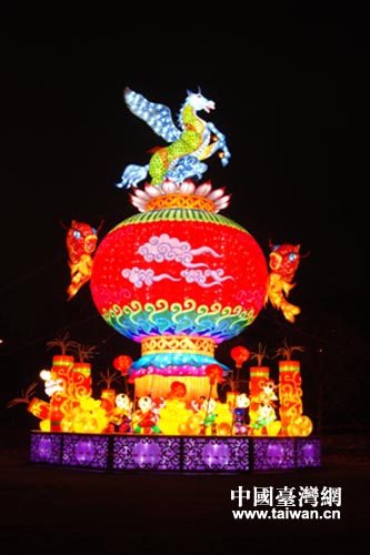 中國臺灣網2月13日臺中消息 目前,正在臺中市文心森林公園舉辦的中臺灣元宵燈會上,來自四川自貢的彩燈引人注目。這是自貢彩燈繼2011年和2012年亮相中臺灣元宵燈會驚艷全島后,應臺中市政府觀光旅游局和臺中市旅游商業同業公會邀請赴臺參展。