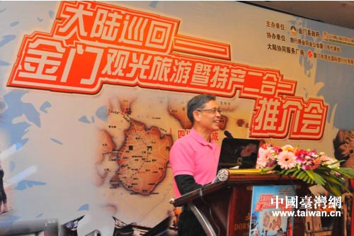 金門縣政府副縣長吳友欽在會上介紹了金門旅游資源及當地特產業(yè)情況。吳友欽表示,金門保存了良好的閩南文化、得天獨厚的自然生態(tài)風光等。當地有名的特產金門高粱酒在臺灣市場占有率約八成;貢糖、牛肉干等特產以及金門離島免稅政策對眾多大陸游客都具有很強的吸引力,金門旅游越來越受到大陸游客的青睞,歡迎大家到金門觀光體驗。