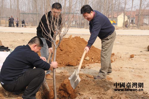 市臺辦主任王秀輝與大家一起植樹。(圖片來源:淄博市臺辦)
