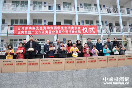 中國臺灣網(wǎng)3月17日廣元消息 廣元市臺辦在踐行黨的群眾路線教育實踐活動中,組織開展下基層送愛心、送服務(wù),為朝天區(qū)西北鄉(xiāng)小學、花石鄉(xiāng)小學、青川縣茶壩鄉(xiāng)九年制學校、劍閣縣龍源鎮(zhèn)小學和旺蒼縣福慶鄉(xiāng)小學的60名貧困學生送上了臺商彭蔭剛先生資助的3萬元生活費,協(xié)助正黃集團廣元市正黃置業(yè)有限公司向朝天區(qū)青林鄉(xiāng)小學等4所學校捐贈了30臺教學電腦。(中國臺灣網(wǎng)廣元市臺辦通訊員 劉彥軍)