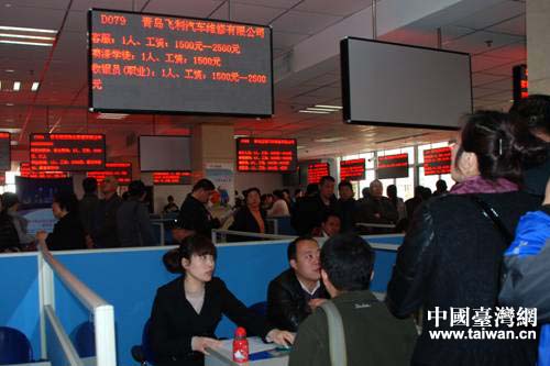 中國臺(tái)灣網(wǎng)3月24日青島消息 為解決臺(tái)資企業(yè)招工難的問題,青島市臺(tái)辦積極協(xié)調(diào)青島人力資源市場,指導(dǎo)青島市臺(tái)灣同胞投資企業(yè)協(xié)會(huì)組織有招工意向的臺(tái)資企業(yè),于3月21日在青島市人力資源市場舉辦了“2014春季臺(tái)資企業(yè)專場招聘會(huì)”。