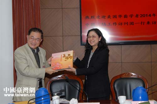 中國臺灣網3月31日上海消息 日前,美國南加州大學教授張文基、華夏政略研究會會長王中平、南加州臺北論壇負責人史學穎等一行六人來滬與上海市臺聯理事座談交流。市臺聯黨組書記季平、會長盧麗安等領導出席。大家圍繞“中國夢”的內涵、臺灣問題的解決等主題展開研討。