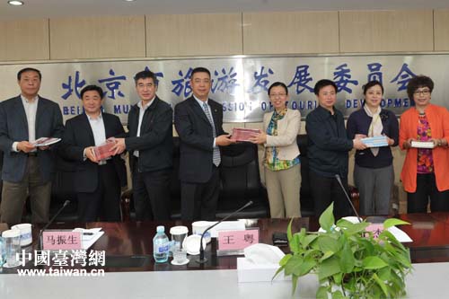 中國(guó)臺(tái)灣網(wǎng)4月2日北京消息 4月1日,北京市旅游發(fā)展委員會(huì)副主任王粵、北京市人民政府臺(tái)灣事務(wù)辦公室副巡視員馬振生、北京市人民政府新聞辦公室副主任白杰和來(lái)自北京市接待臺(tái)灣游客的旅行社負(fù)責(zé)人、導(dǎo)游40余人聚集一堂,參加《寶島游客逛北京》發(fā)書(shū)儀式。