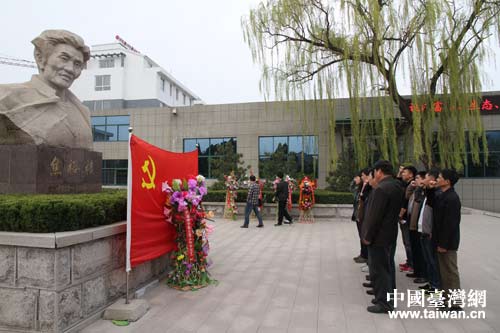 中國臺灣網4月2日淄博消息 日前,淄博市臺辦黨支部組織全黨員,來到位于博山區源泉鎮北崮山村的焦裕祿紀念館進行參觀學習。全體黨員向焦裕祿同志塑像敬獻了花籃,并在塑像前重溫了入黨誓言,在焦裕祿紀念館內參觀學習。