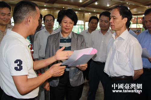 欽州市委書記、市人大常委會主任肖鶯子仔細(xì)了解臺創(chuàng)園農(nóng)場建設(shè)相關(guān)情況。(圖片來源:欽州市臺辦)