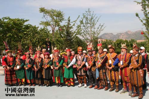 在青島世園會臺灣園,38位身穿華麗民族服飾的臺灣少數民族客人手挽手唱起祝福歌,跳起民族舞,吸引了不少游人駐足。這些臺灣少數民族長老頭目文化交流團的成員來自賽夏族、泰雅族、阿美族、太魯閣族、魯凱族、葛瑪蘭族、布農族、排灣族8個民族。