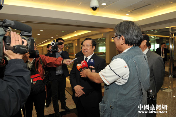 湖北省委常委、常務副省長王曉東在機場接受臺灣媒體采訪。(圖片來源:湖北省臺辦)