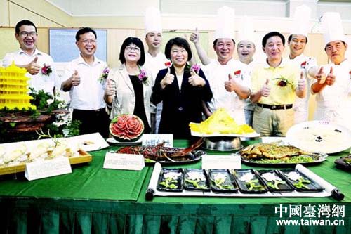 中國臺灣網5月19日嘉義消息 武昌魚“游過”海峽,黃鶴樓“飛臨”臺灣。5月16日下午,在臺灣嘉義市職業總工會所屬職業訓練中心,一場精彩的鄂臺美食烹飪秀熱鬧上演,來自湖北和臺灣的20多名大廚亮出兩地美食大餐,并現場登臺競技。