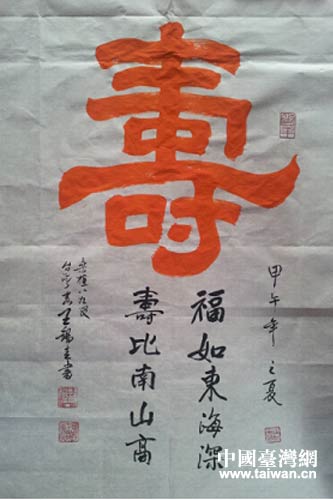 中國(guó)臺(tái)灣網(wǎng)7月7日張家界消息 日前,應(yīng)湖南張家界市臺(tái)辦的邀請(qǐng),近90歲高齡的臺(tái)灣桑植籍著名書(shū)法家王錫圭來(lái)到家鄉(xiāng)揮毫潑墨,為鄉(xiāng)親們留下一幅幅珍貴作品。