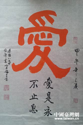 “1988年以來(lái),我每年都要回大陸,有的時(shí)候是回家鄉(xiāng)看看,有的時(shí)候是參加大陸的書(shū)法展。通過(guò)書(shū)法,以字會(huì)友,以書(shū)法傳承中華文明,是一件有意義的事情。”“我也參加過(guò)韓國(guó)、日本等地舉辦的書(shū)法大展,將中華書(shū)法文化傳播到世界,也是件功德無(wú)量的事。”
