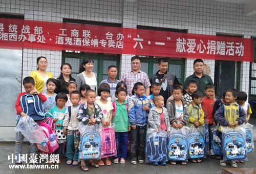 中國臺灣網5月29日保靖訊 時值“六一”兒童節來臨之際,由保靖縣委統戰部、縣工商聯、縣臺辦組織,聯系酒鬼酒湘西辦事處、酒鬼酒保靖專賣店與毛溝鎮舍坪村駐村扶貧工作組等相關人員一起冒雨深入毛溝鎮巴科村村小和舍坪村村小,開展迎“六一”愛心捐贈活動,保靖縣政協副主席、工商聯主席彭圖韜、臺辦主任胡亞玲出席了活動。