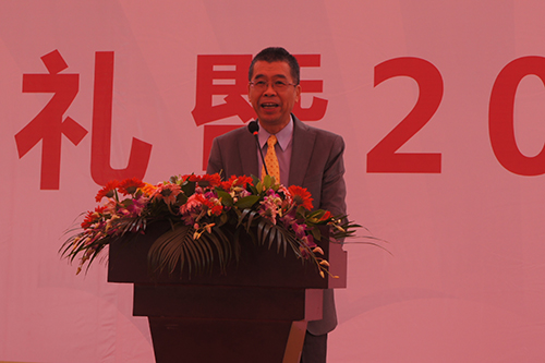 臺灣聯發科技董事長蔡明介在成都辦公樓啟用典禮上致辭。(圖片來源:四川省臺辦)