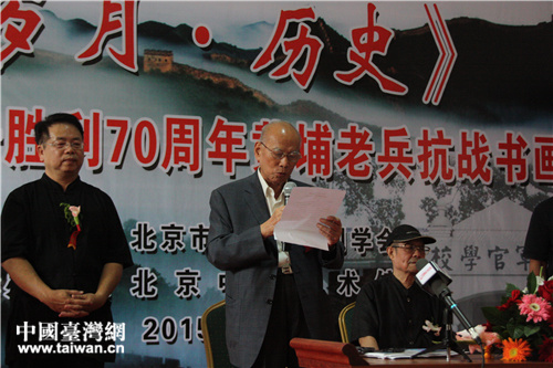 中國臺灣網9月20日北京訊 (記者 段雯婷)9月20日下午,由北京市黃埔軍校同學會主辦,北京中和美術館承辦的《歷史·歲月》——紀念抗戰勝利70周年海峽兩岸黃埔老兵抗戰書畫展在北京通州畫家村開幕,書畫展將歷時一個月。