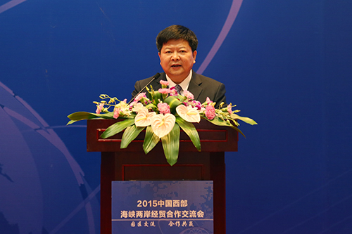 中國臺灣網9月23日四川訊 9月22日上午,2015中國西部海峽兩岸經貿合作交流會在四川舉行,國務院臺辦副主任龍明彪,四川省政府副省長甘霖,四川省政協副主席楊興平,中國國民黨前副主席、臺中市前市長、臺灣旺旺集團副董事長胡志強、全國臺企聯榮譽會長丁鯤華等出席交流會。臺灣知名產業園區負責人、專家學者、全國臺企聯及大陸部分臺資企業代表,大陸各地和島內的青年臺商,四川省級有關部門負責人,重慶、云南、陜西等西部省市臺辦、涉臺園區的代表,四川各地園區、企業有關負責人等共計300余人參加會議。