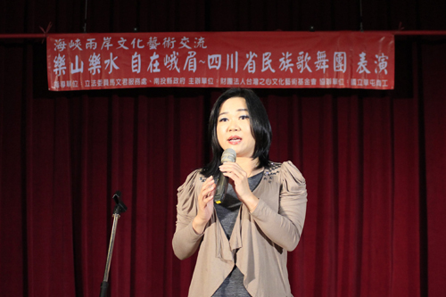 此次四川民族歌舞團赴臺交流巡演活動由四川省海峽兩岸交流促進會組織,會同臺灣相關方面共同舉辦。樂山市副市長徐建群、四川省臺辦副主任趙宇率團,共有37人赴臺灣交流巡演。活動以“樂山樂水樂臺灣,峨眉大佛連兩岸”為主題,在為期8天的時間里,來自四川樂山市歌舞劇團、四川省川劇院及自貢市雜技團的演員們將前往高雄、南投、苗栗、彰化等市縣巡回演出,為廣大臺灣同胞獻上一場場具有濃郁的四川少數民族特色的歌舞、雜技、川劇變臉等精彩節目,讓臺灣同胞近距離感受四川豐富多彩的少數民族風情和巴蜀文化的無限魅力。(中國臺灣網、四川省臺辦聯合報道)