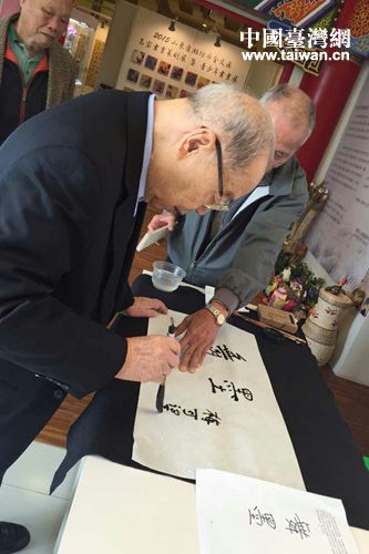 梅可望先生雖是97歲高齡,卻精神矍鑠、身體硬朗。在活動現場,他欣然為活動題寫了“舞墨飛箏”的字幅,并表達了對濰臺文化交流的殷切期望——“山東是中國文化底蘊最深厚的地方,希望透過山東濰坊市青少年的作品讓臺中的青年學子見證中華文化美學與感動,并重新拾起文房四寶,讓中華文化在臺灣發光發熱”。