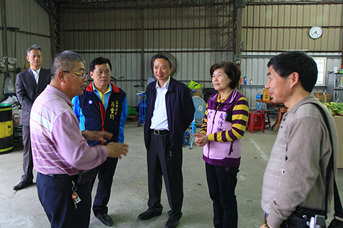 周敏謙一行在嘉義縣義竹鄉參訪時與民意代表翁重鈞等親切交談。
